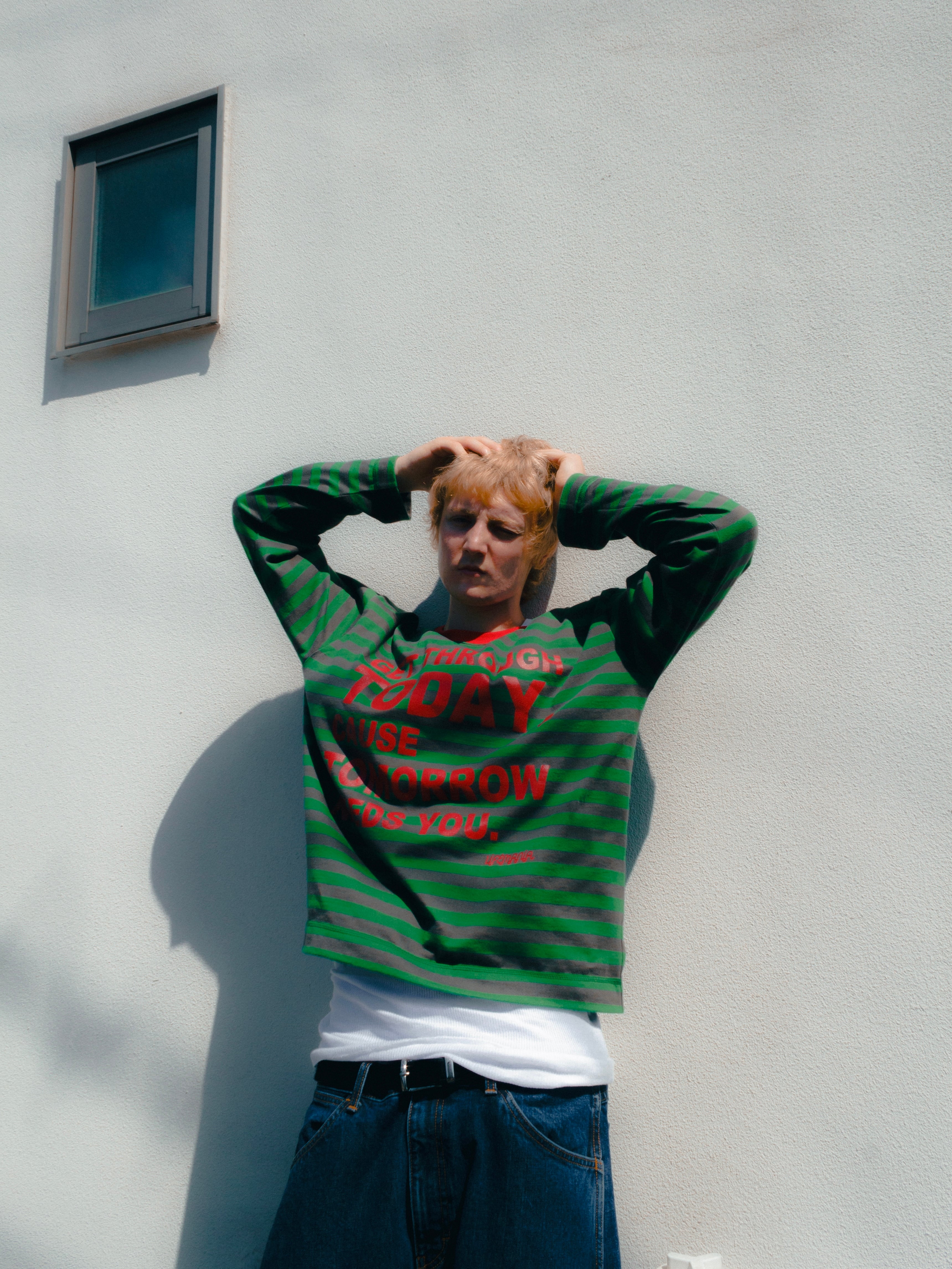 フロントには “GET THROUGH TODAY, CAUSE TOMORROW NEEDS YOU.” のメッセージをプリントし、日常に寄り添う一枚に仕上げました。